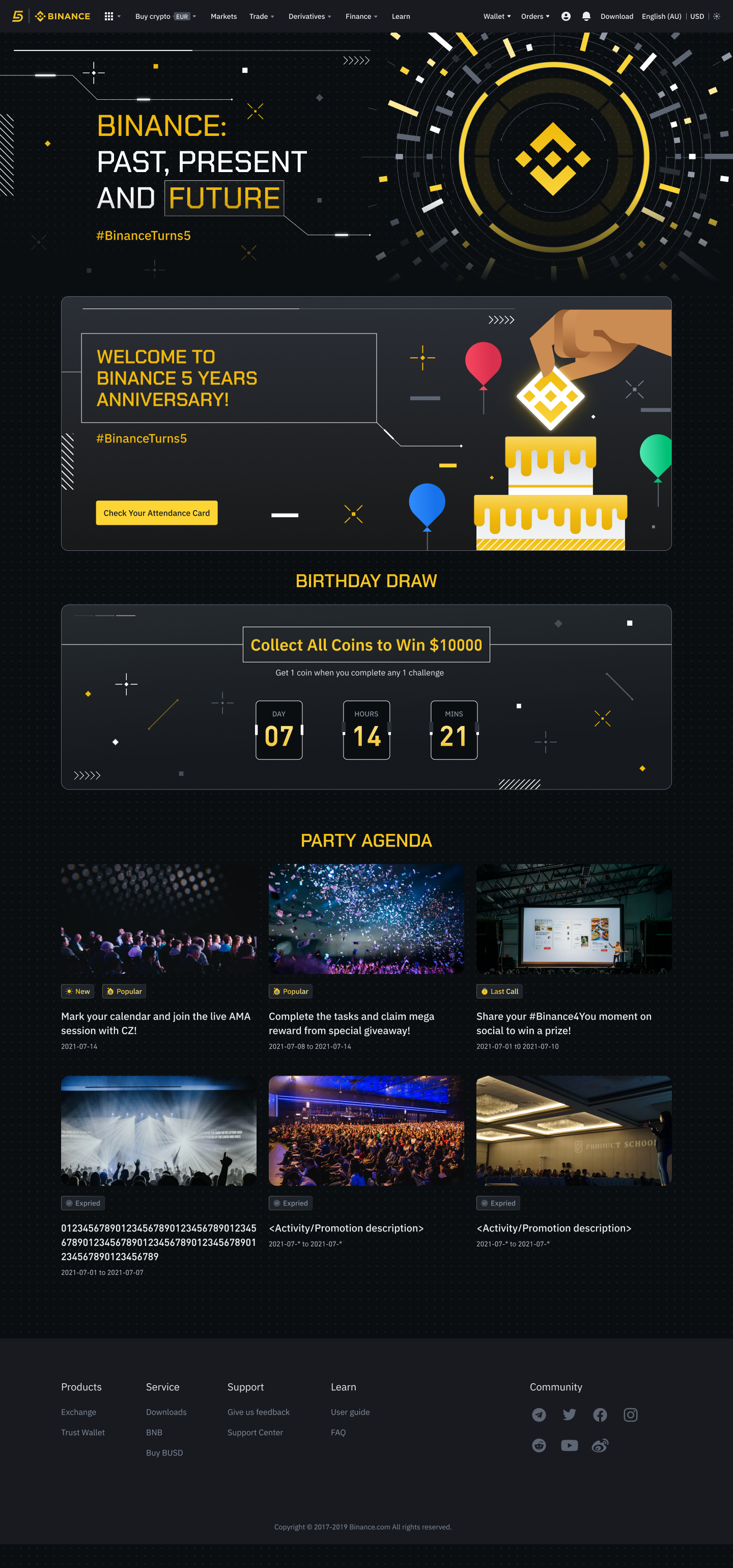 Developed the themes for the celebration of Binance’s 5th Anniversary, around the idea of celebrating the Past, Present and the Future. This campaign was executed across multiple digital and social channels, culminating in an offline event in Paris, France on the 14th of July.