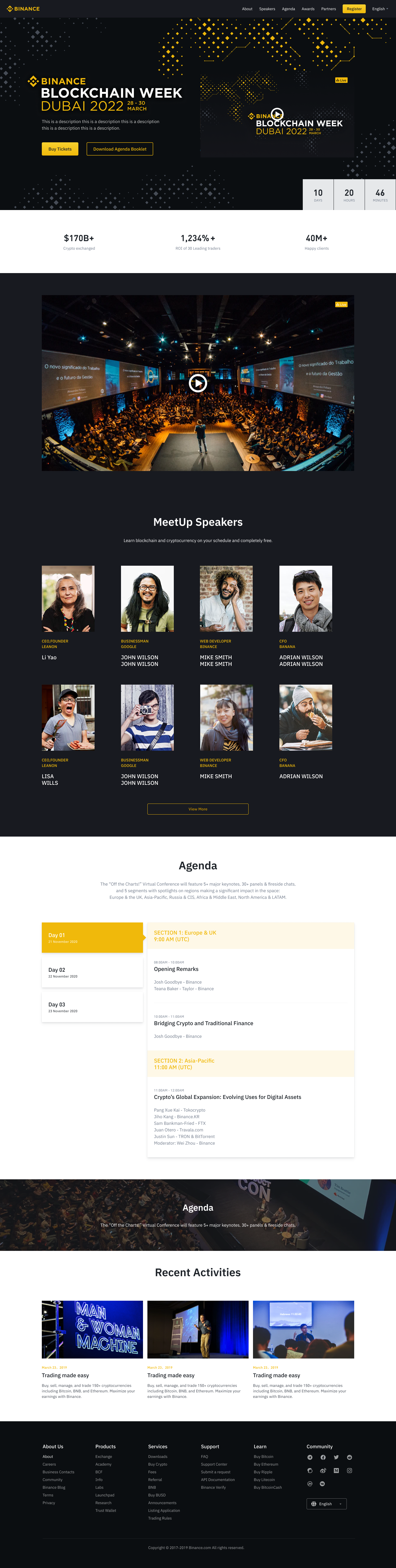 Binance Blockchain Week was organised across a 3 day period in March of 2022. This tech conference targetted at industry professionals and fans alike, brought the community together with 105 speakers and 16 key sponsors.